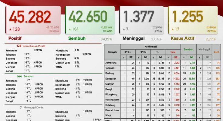 TERKONFIRMASI sebanyak 128 orang (114 orang melalui Transmisi Lokal dan 14 PPDN)