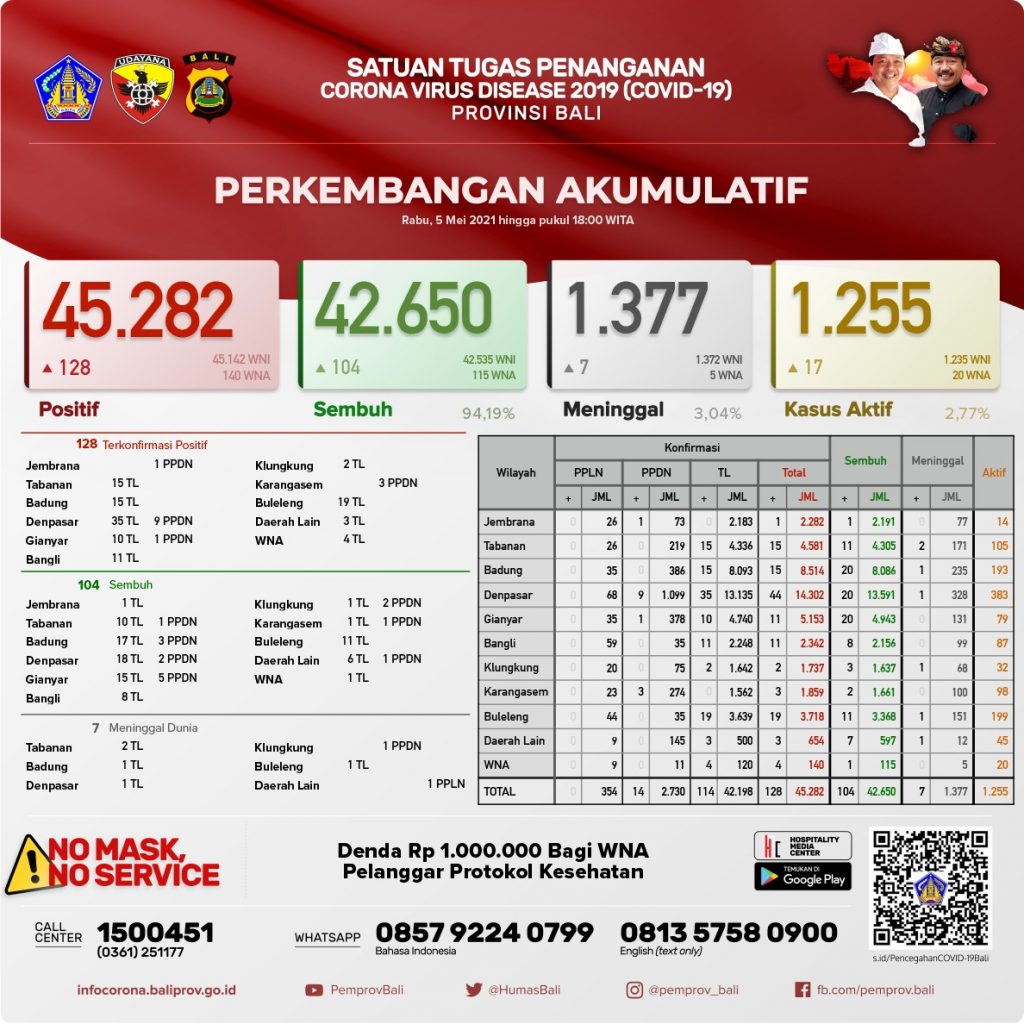 Kasus Aktif per hari ini menjadi 1.255 orang (2,77%).