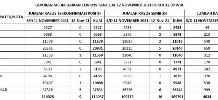 Update Penanggulangan Covid-19, Jumat, 12 November 2021.