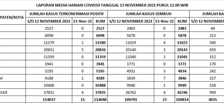 TERKONFIRMASI sebanyak 11 orang, SEMBUH sebanyak 23 orang dan 3 pasien meninggal dunia.