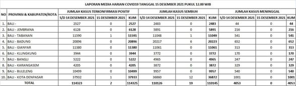 Update Penanggulangan Covid-19, Rabu, 15 Desember 2021.