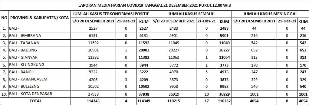 TERKONFIRMASI sebanyak 4 orang, SEMBUH sebanyak 17 orang dan 0 pasien meninggal dunia.