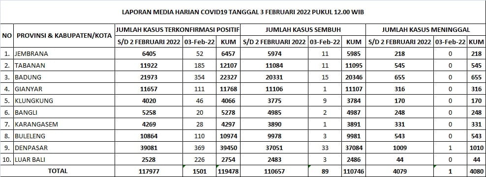 Update Penanggulangan Covid-19, Kamis, 3 Februari 2022.