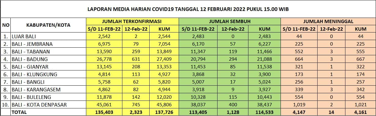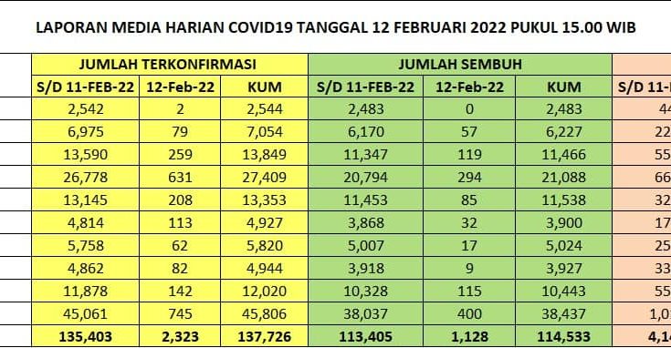 Update Penanggulangan Covid-19, Sabtu, 12 Februari 2022.