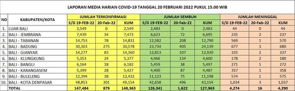 Update Penanggulangan Covid-19, Minggu, 20 Februari 2022.