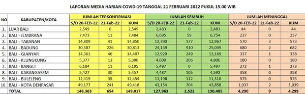 Update Penanggulangan Covid-19, Senin, 21 Februari 2022.