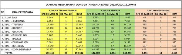 Update Zonasi Kabupaten / Kota di Provinsi Bali Selasa, 1 Maret 2022.