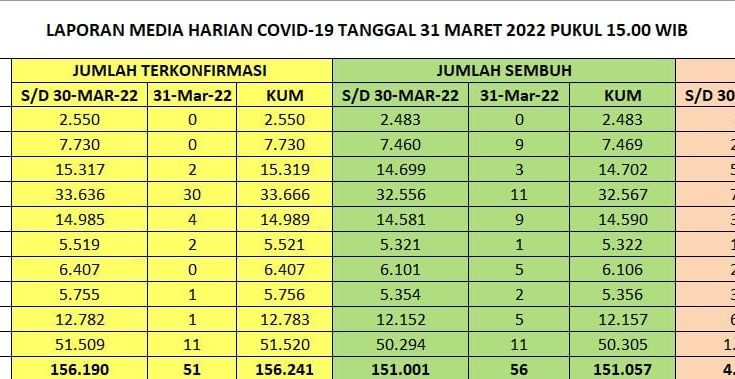 Rincian Data : Kasus Harian, Zonasi, Kasus Aktif, dan Tempat Perawatan, di Provinsi Bali Hari Kamis, 31 Maret 2022, sbb :