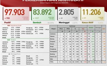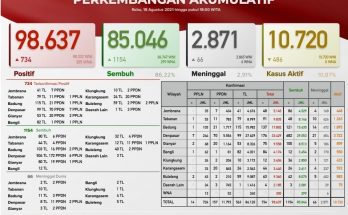 Pertambahan kasus hari ini sebagai berikut : TERKONFIRMASI sebanyak 583 orang (469 orang melalui Transmisi Lokal, 112 PPDN dan 2 PPLN), SEMBUH sebanyak 1.055 orang dan 52 pasien meninggal dunia. …