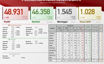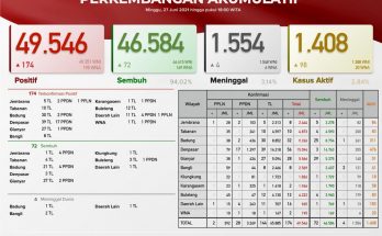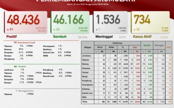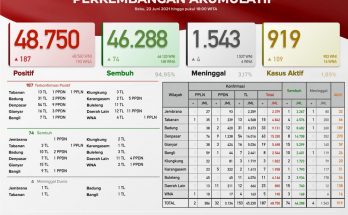 Pertambahan kasus hari ini sebagai berikut : TERKONFIRMASI sebanyak 174 orang (144 orang melalui Transmisi Lokal, 28 PPDN dan 2 PPLN), SEMBUH sebanyak 72 orang dan 4 pasien meninggal dunia. …