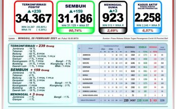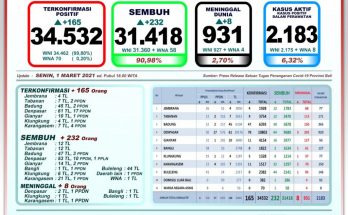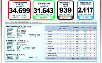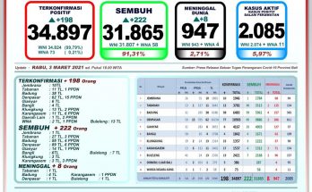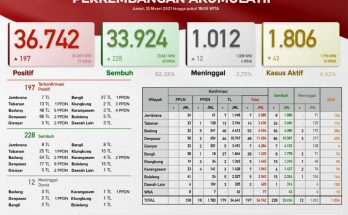 Pertambahan kasus hari ini : TERKONFIRMASI sebanyak 158 orang (152 orang melalui Transmisi Lokal dan 6 PPDN) SEMBUH sebanyak 160 orang, dan 5 orang Meninggal Dunia. Jumlah kasus secara kumulatif …
