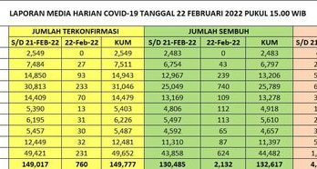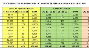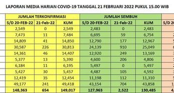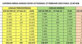 Update Penanggulangan Covid-19, Minggu, 27 Februari 2022 Selengkapnya